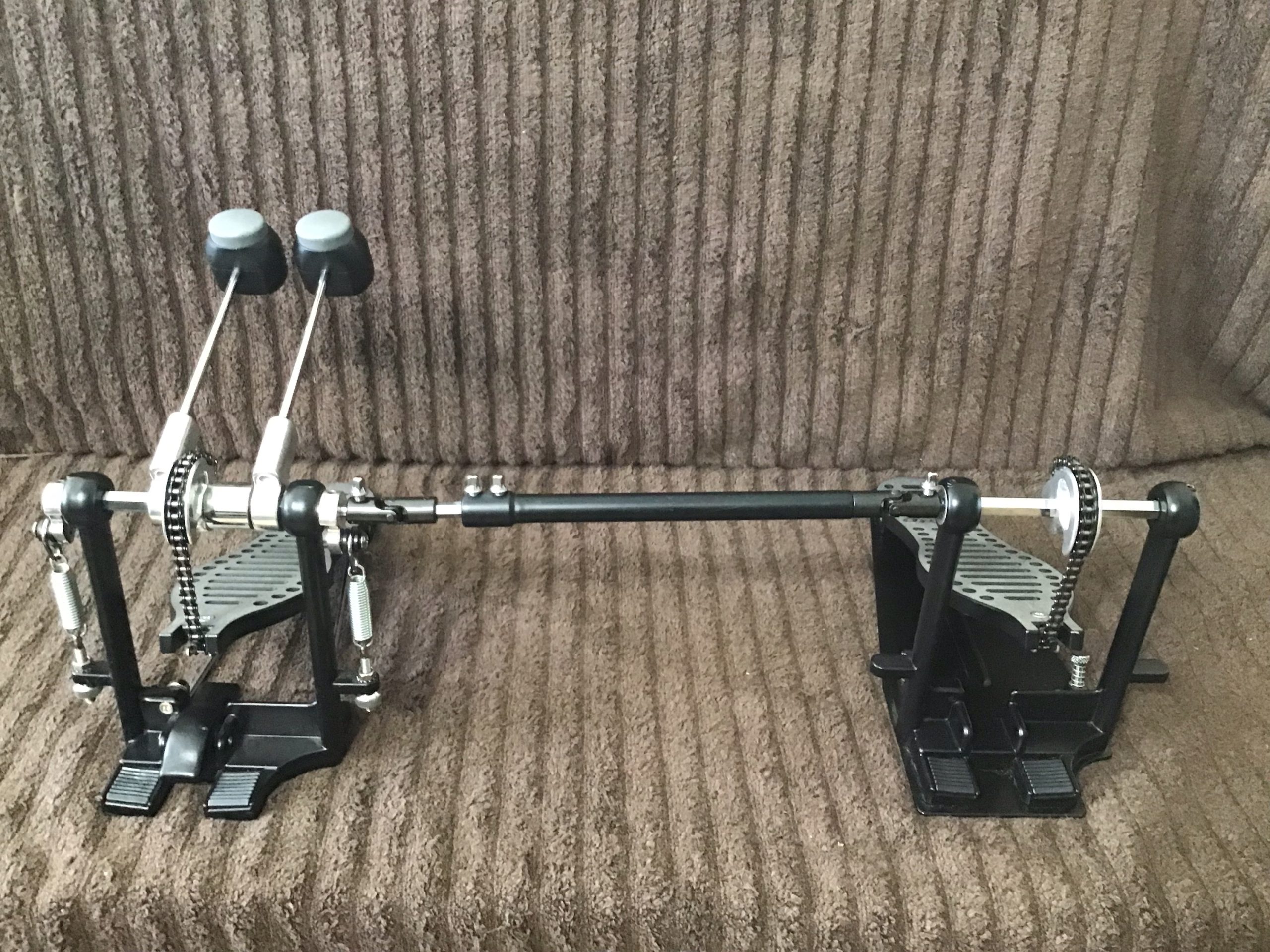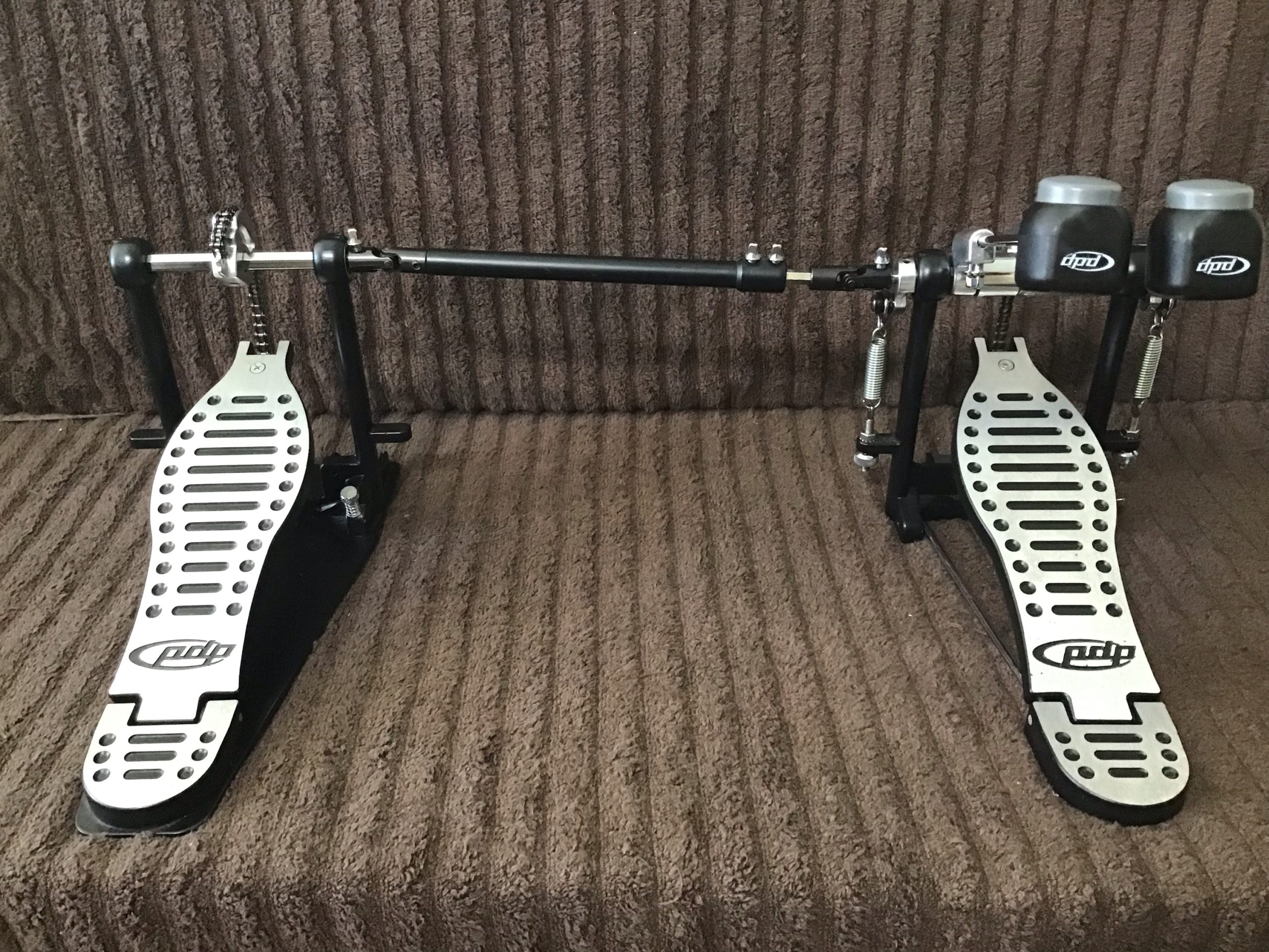 Here is a set PDP 402 Double Bass Drum Pedals. Made by DW, these single chained bass pedals are in excellent condition with thick beaters.