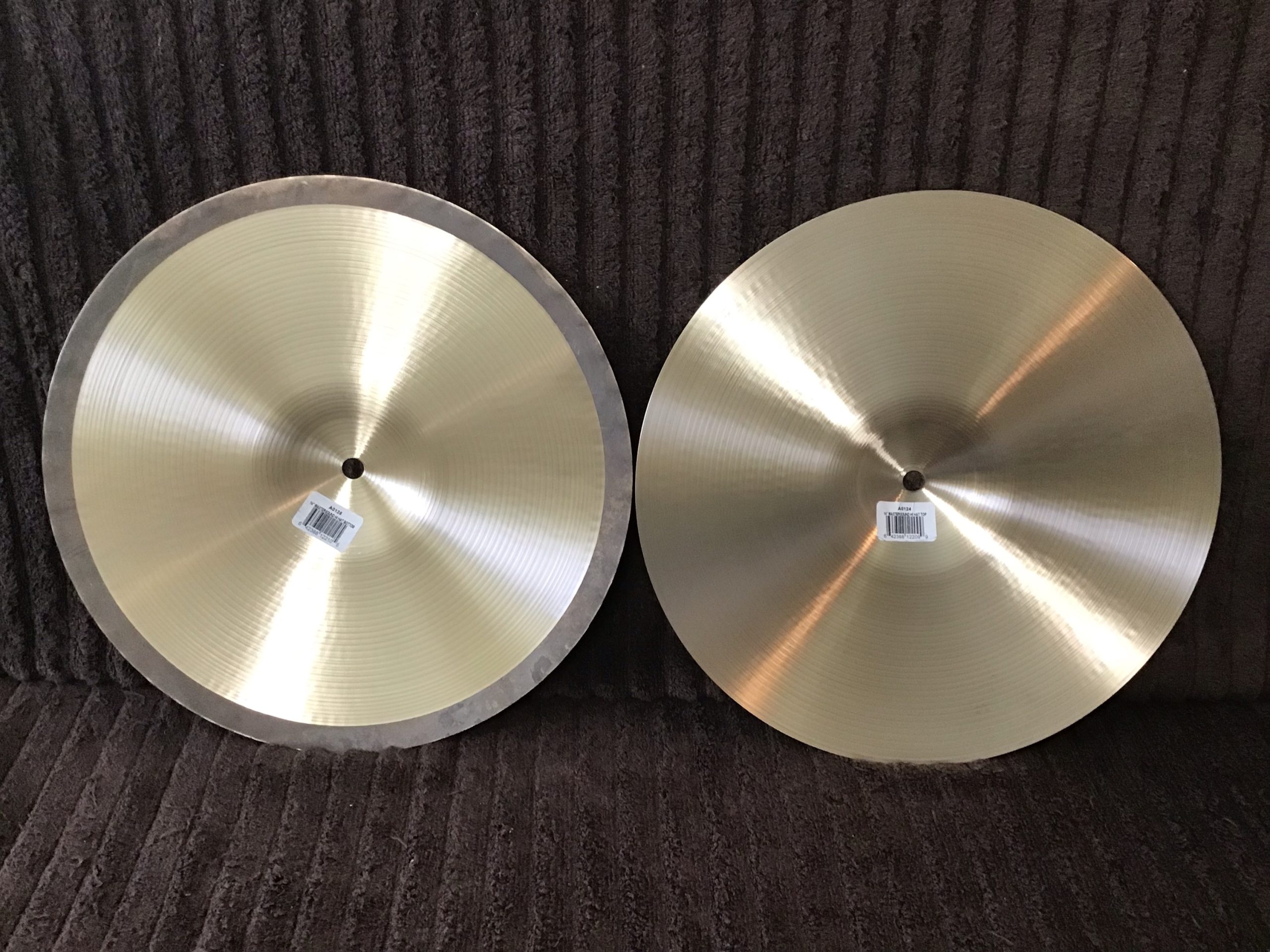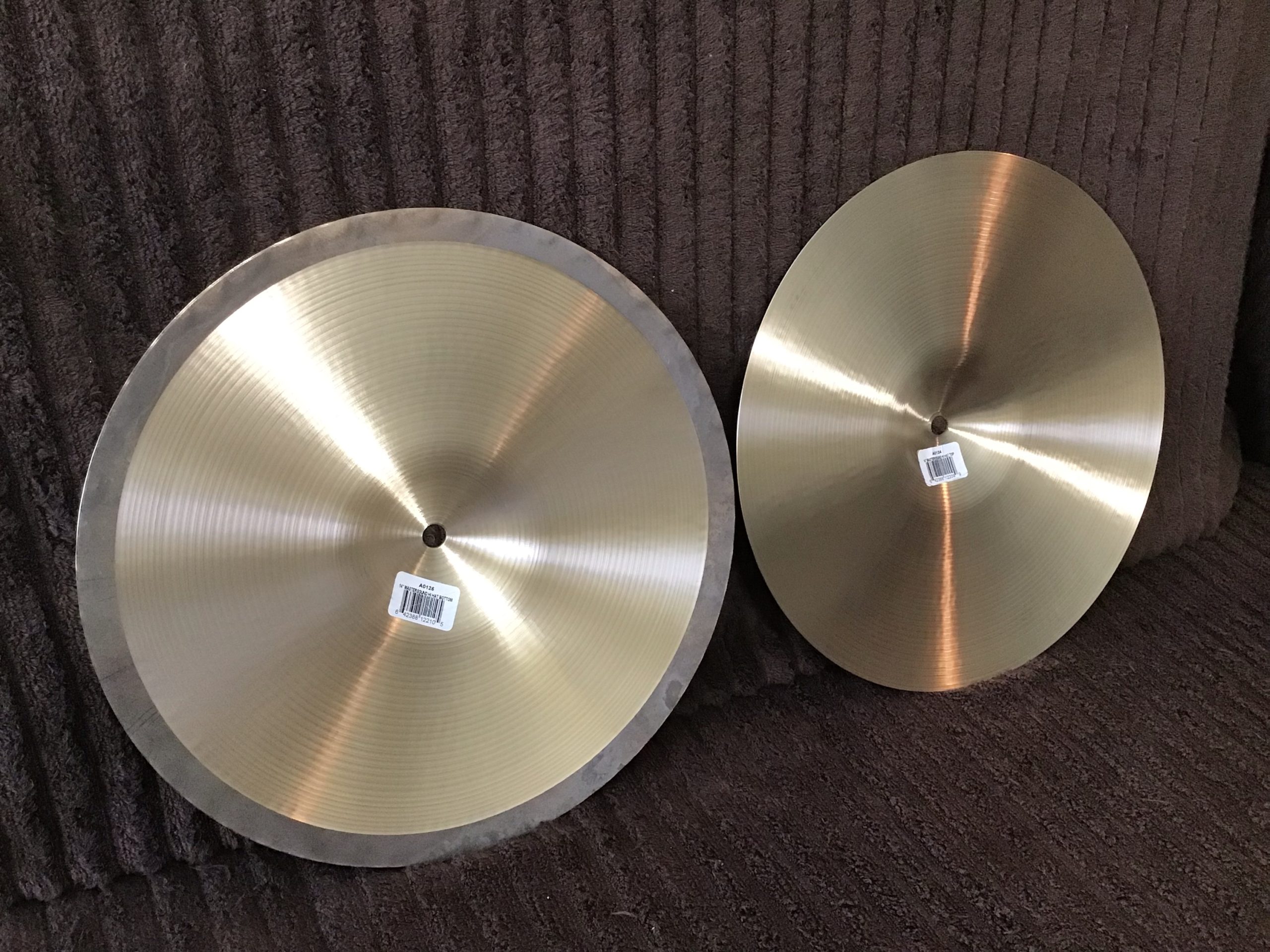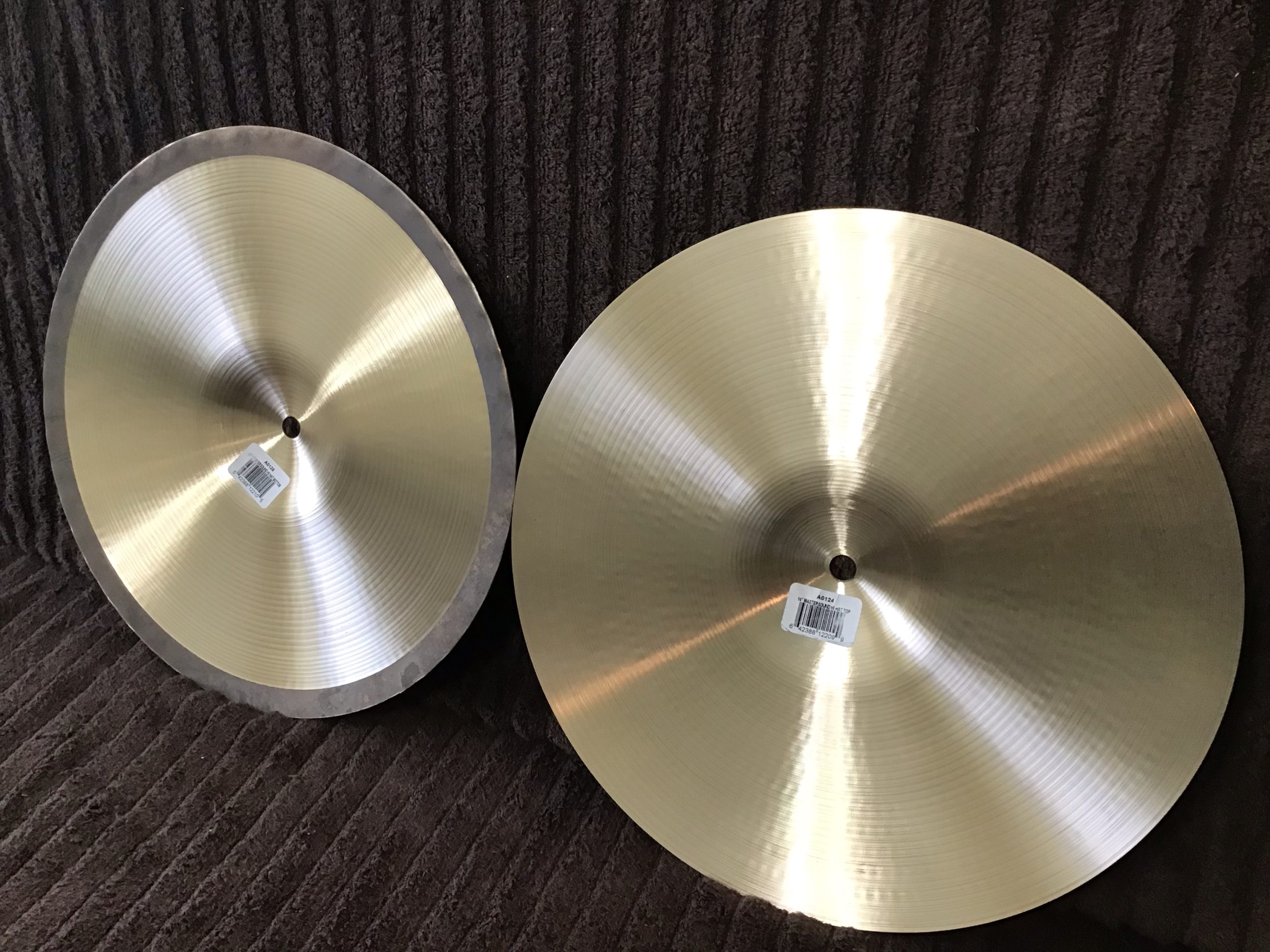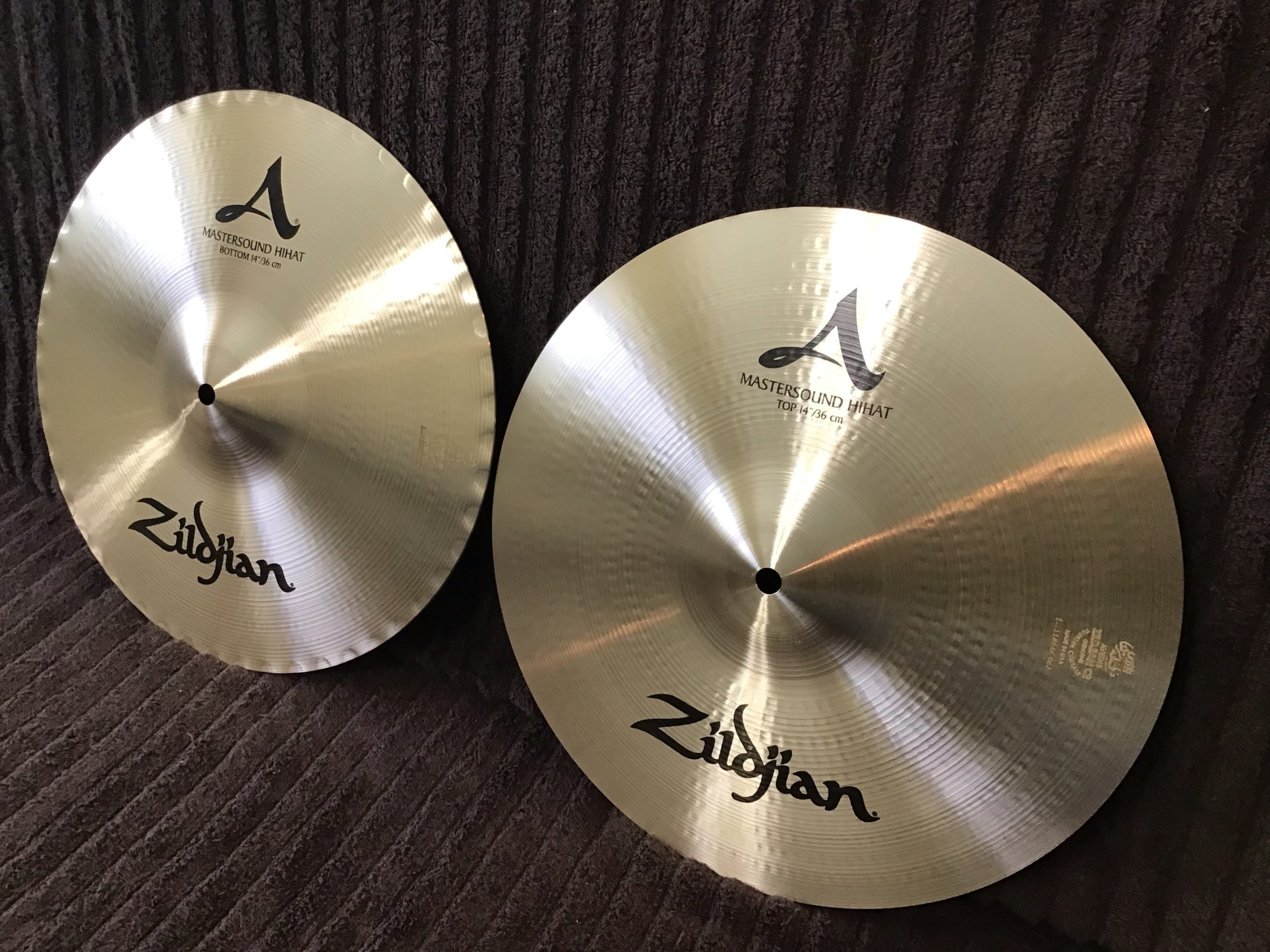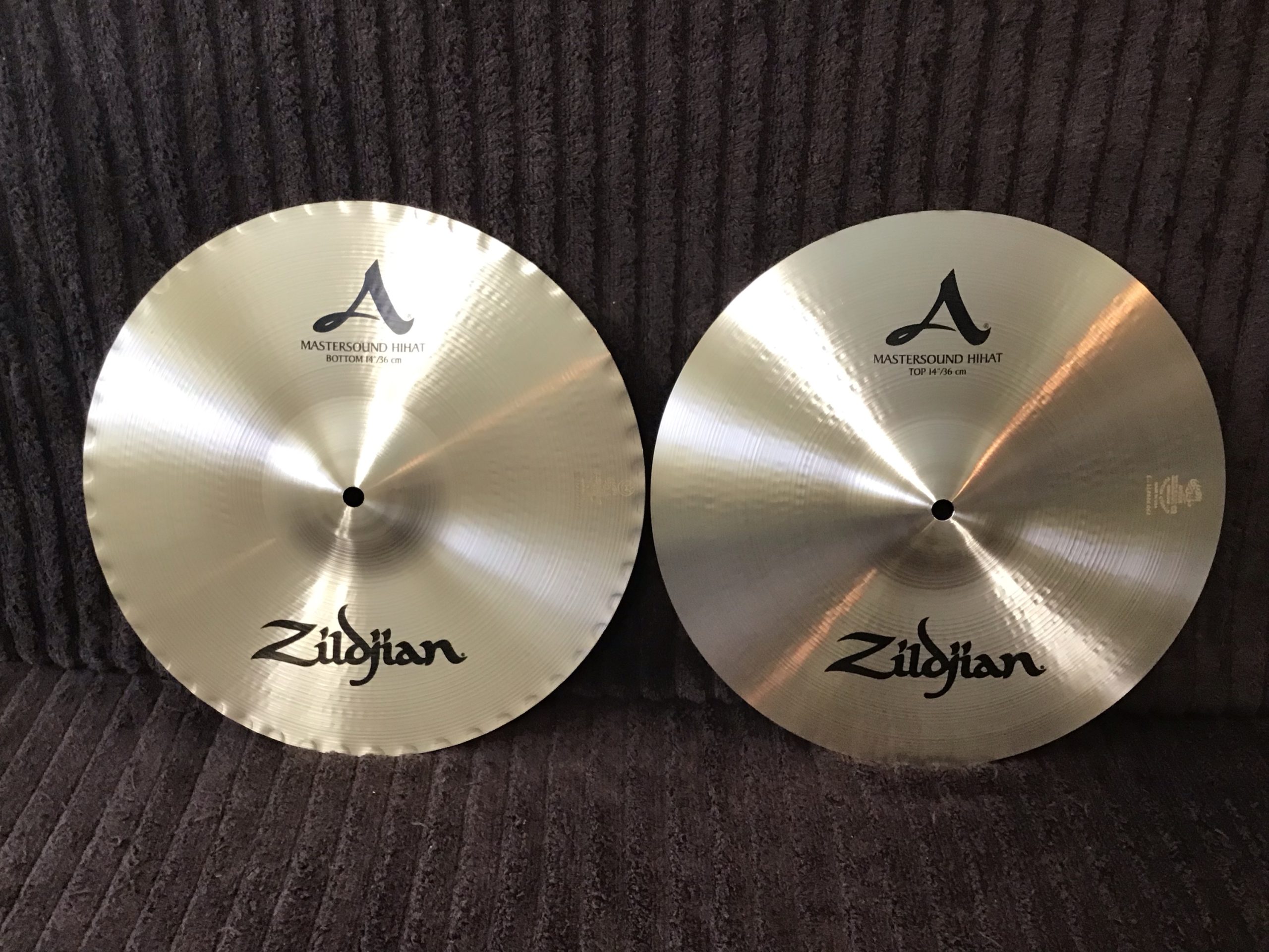Professional cymbals with bright sound, excellent stick definition and that classic Mastersound “chic” are in excellent condition with some light fingerprinting and no cracks or key holing. The top cymbal weighs in at 994 grams and the bottom cymbal weighs in at 1412 grams.